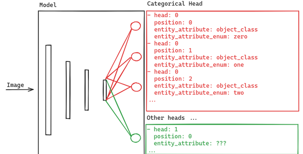 In our case we're creating a single headed Model. With head 0 producing 10 Object Class attributes (one for each digit 0-9) and a pixel location attribute representing the bounding box contaning each digit.